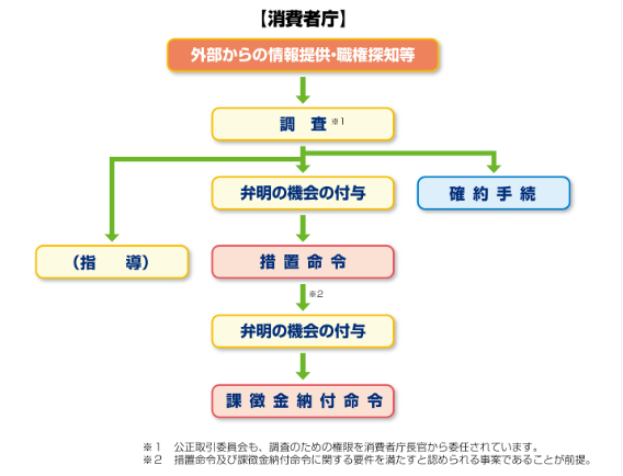 当該行為が課徴金の対象となる場合は、消費者庁が違反行為によって得られた売上額を基に課徴金を算定します。詳しくは「2-3.課徴金の計算方法」で解説します。